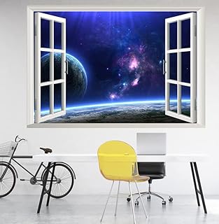 Lontor 偽窓ステッカー ウォールステッカー おしゃれ 宇宙 星空 壁飾り 窓枠 絵 窓の景色 オープンウィンドウ ウォールステッカー 窓ポスター インテリア お風呂のポスター 壁紙 子供部屋 寝室 天井 インテリア雑貨 ガラス 窓 冷蔵庫 ステッカー 賃貸OK Wall stickers