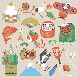 ウォールステッカー 迎春 年賀状 謹賀新年 明けましておめでとう 飾付け 内装 店内装飾 インテリア 和柄 日本 初春 門松 しめ縄 扇子 和風リース お神酒 お正月 年賀状の写真に 謹賀新年 入園式 入学式 卒業式 古風 古典 着物柄 海外へのプレゼントに w0211-1