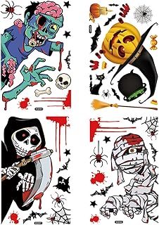 ハロウィン シール ステッカー 飾り ウォールステッカー 静電ステッカー 4枚いり 死神 ミイラ ゾンビ かぼちゃ 壁シール インテリア はがせる Halloween 装飾 両面ステッカー