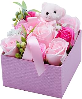 シャボンフラワーベアBOX ソープフラワー アレンジメント クマのぬいぐるみのボックスフラワー (ピンク)